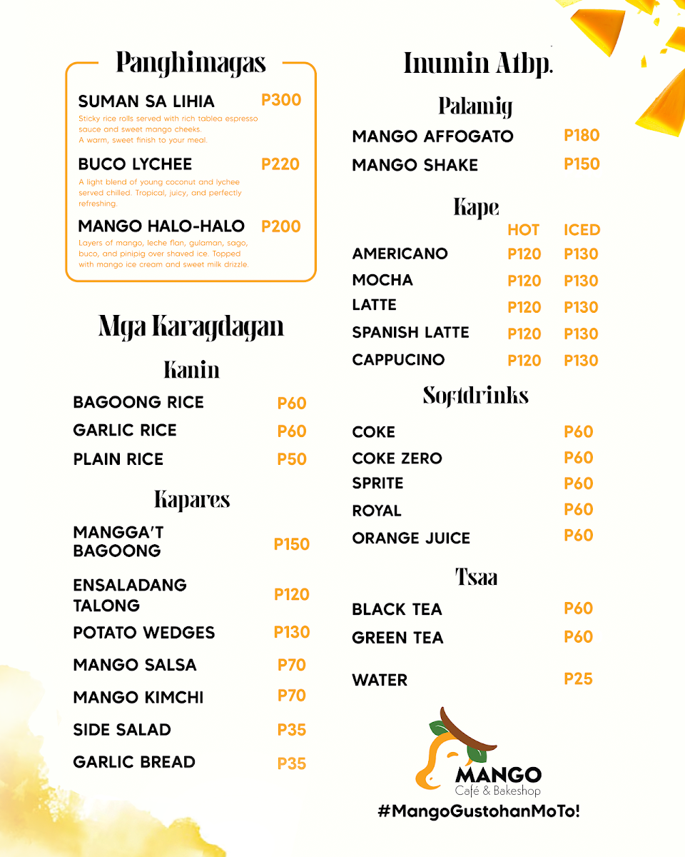 Mango Cafe and Bakeshop, located in SM City Sucat, offers a delightful fusion of flavors that captivates the senses. Specializing in desserts and beverages, this cozy cafe is renowned for its heavenly Mango Halo-Halo, a refreshing traditional treat featuring a medley of sweet ingredients, ideal for the warm tropical climate. Guests rave about the Corned Beef Sandwich, tender and rich at an affordable price of ₱290. The cafe’s shakes, starting at ₱120, provide a cool sip alongside their famed cake selections.